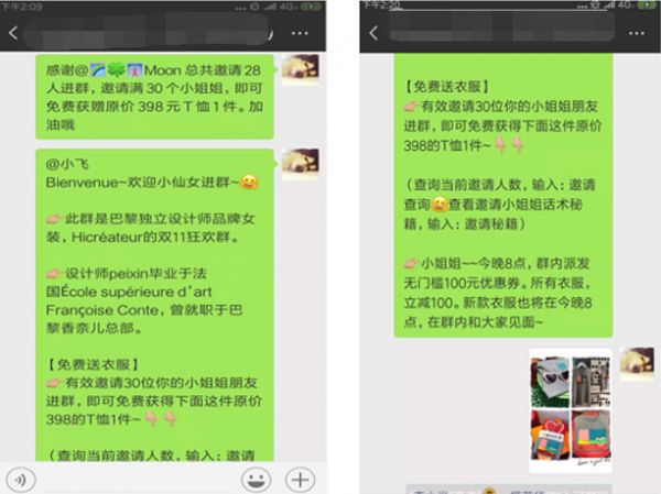 所以,放出來一個(gè)活動(dòng),其實(shí)就是分銷。讓買過衣服的小伙伴,將小程序二維碼通過分銷的方式發(fā)到群里。這樣,當(dāng)社群里有人通過他的二維碼進(jìn)入小程序并購買,分享者是可以拿到用戶幾個(gè)點(diǎn)的提成。分銷前,不能莫名其妙,丟一個(gè)分銷小程序進(jìn)群,太突兀了。所以,你懂的,社群公告真的很好用。再來一波,刷屏。