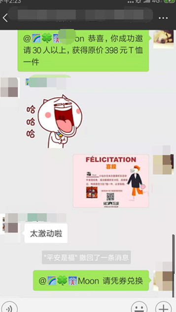 我們提前做了一張獎(jiǎng)狀,在群里發(fā)給用戶,用戶可以憑這個(gè)獎(jiǎng)狀找客服領(lǐng)取免費(fèi)送的T恤。這樣的設(shè)計(jì),也是希望這個(gè)獎(jiǎng)狀可以起到二次傳播的作用。
