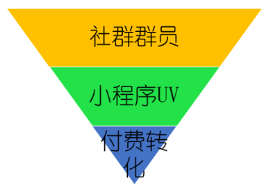 首先,我們要清楚一個(gè)付費(fèi)轉(zhuǎn)化漏斗。社群群員->小程序UV->付費(fèi)轉(zhuǎn)化。
