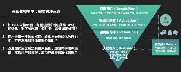 我們?cè)诟鱾€(gè)渠道,可通過(guò)AARRR模型的營(yíng)銷目標(biāo)進(jìn)行拉新、留存、促活、轉(zhuǎn)化類活動(dòng),形成營(yíng)銷活動(dòng)閉環(huán),再加入“自傳播”的分享邏輯,進(jìn)而產(chǎn)生滾雪球效應(yīng)進(jìn)行獲客。