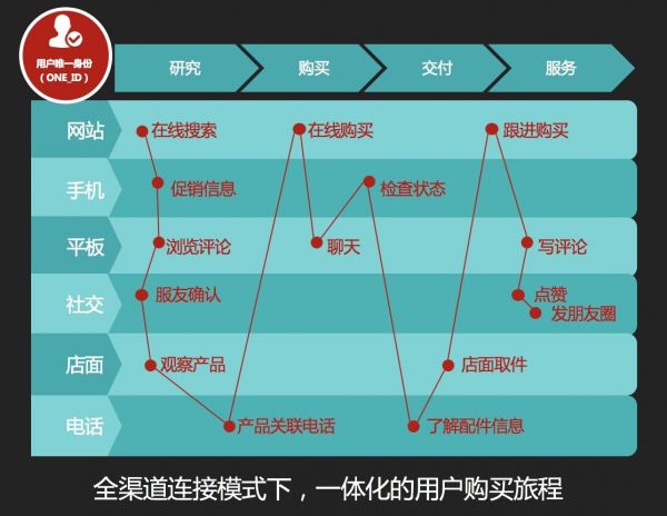 全渠道連接是運(yùn)用多種可能的渠道與用戶建立連接和傳遞內(nèi)容,包括用戶對(duì)產(chǎn)品的感知、研究、購(gòu)買、交易和服務(wù)的全過(guò)程。全渠道連接的思維促進(jìn)了多種渠道間的協(xié)同和整合進(jìn)程,需要從整體上思考如何向用戶提供更具一致性的無(wú)縫體驗(yàn)。