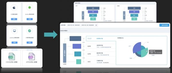通過(guò)一站式管理,通過(guò)sdk集成、API對(duì)接等方式打破數(shù)據(jù)孤島,監(jiān)控核心全渠道數(shù)據(jù),可視化了解每個(gè)渠道的營(yíng)銷轉(zhuǎn)化效果。