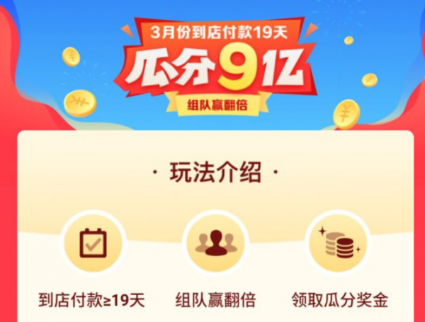 除了高效實(shí)現(xiàn)營(yíng)銷活動(dòng)外,值得注意的是活動(dòng)規(guī)則的策略安排。下面我們來(lái)看看最近比較火的支付寶“到店付款19天瓜分9億”活動(dòng)案例解讀。