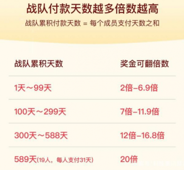 對(duì)于病毒營(yíng)銷大家都耳熟能詳了,支付寶除了關(guān)注傳播因子外,更關(guān)注被邀請(qǐng)進(jìn)入隊(duì)伍后的訂單轉(zhuǎn)化率。“瓜分9億”的活動(dòng)一直在強(qiáng)調(diào)組隊(duì)的意義,一句話就是你戰(zhàn)隊(duì)內(nèi)所有人到店付款的天數(shù)相加,累計(jì)天數(shù)越多,所翻的倍數(shù)就越高。那么想賺取更多的獎(jiǎng)勵(lì),絕大多數(shù)的用戶會(huì)都會(huì)召集自己的好友來(lái)參加,并且拉動(dòng)隊(duì)伍里面的人記得要到店消費(fèi)用花唄。在這在很大程度上保障了隊(duì)伍的訂單轉(zhuǎn)化率,讓隊(duì)伍中的每個(gè)成員不能輕易離開或跳隊(duì),并督促對(duì)方完成31天的到店支付。