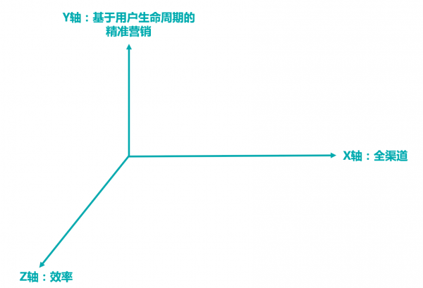 這個(gè)模型類似于“一橫一縱”的坐標(biāo)圖??v向的Y軸是AARRR,從流量一直支撐到你最終的收入,而裂變橫向X軸就是每一個(gè)渠道,通過(guò)打通用戶One-ID打破各渠道數(shù)據(jù)孤島情況,實(shí)現(xiàn)全渠道數(shù)據(jù)連接。Z軸所說(shuō)的效率,就是在運(yùn)營(yíng)X、Y軸的過(guò)程中,能做到節(jié)省時(shí)間、人力成本的高效能運(yùn)營(yíng)。