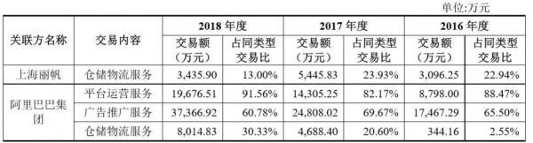 因此,麗人麗妝與阿里的“合作”可以從“關(guān)聯(lián)交易”中窺見一隅。招股書顯示,麗人麗妝與阿里間的關(guān)聯(lián)交易主要包括平臺運營服務(wù)、廣告推廣服務(wù)、倉儲物流服務(wù),其中平臺運營、廣告推廣是商家通常向電商平臺所支付的常規(guī)運營、營銷費用。