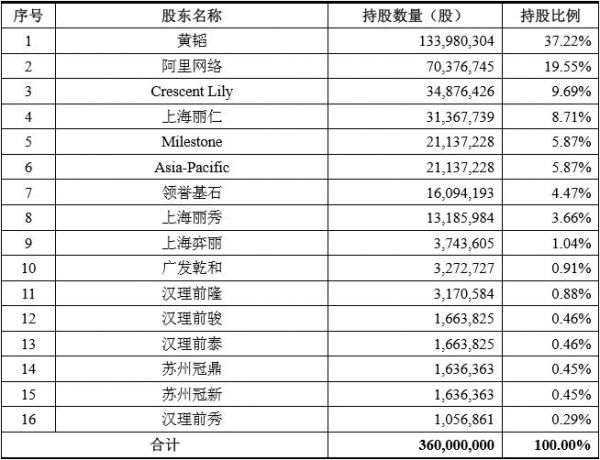 早在2012年,麗人麗妝就以增資的形式引入了阿里創(chuàng)投;2015年其再一次增資,阿里網(wǎng)絡(luò)認購。最終,阿里網(wǎng)絡(luò)持有麗人麗妝19.55%的股權(quán),為第二大股東,第一大股股東為創(chuàng)始人黃韜,持股37.22%。
