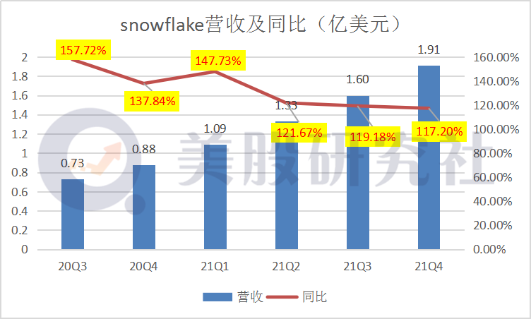 受上一季度凈虧損的影響,公司股價(jià)有所下滑,但是投資者對(duì)這一高速成長(zhǎng)的公司仍然信心十足。北京時(shí)間3月4日凌晨,snowflake發(fā)布了第四季度財(cái)報(bào)。財(cái)報(bào)顯示Q4營(yíng)收為1.9億美元,同比增長(zhǎng)117%,凈虧損1.99億美元,同比擴(kuò)大。