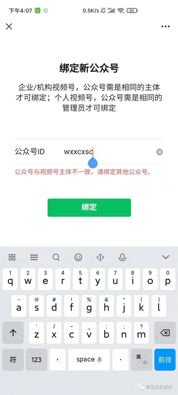 a 企業(yè)或機(jī)構(gòu)視頻號:視頻號和公眾號必須是相同主體,才可以綁定;