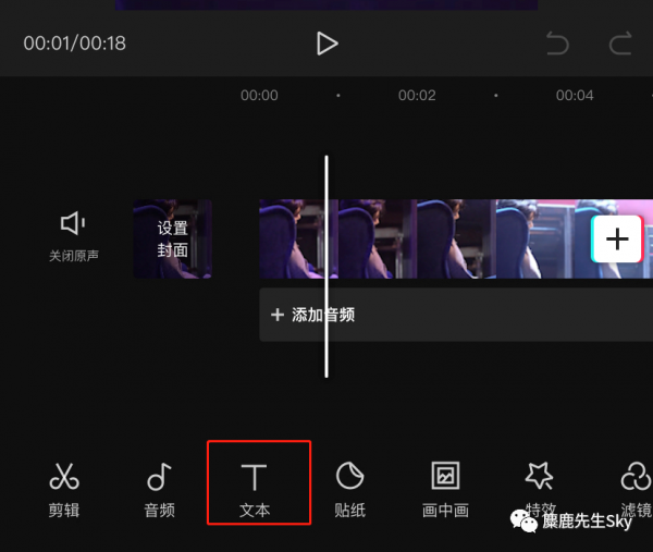 b、導(dǎo)入視頻后點擊“文本”,選擇“識別字幕”,系統(tǒng)就會自動生成字幕