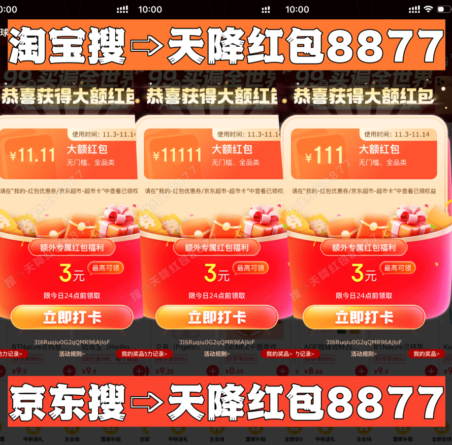 淘寶/京東搜:天降紅包8877
