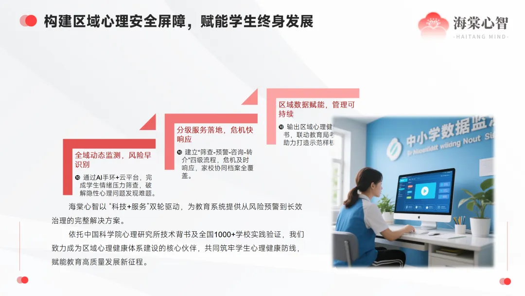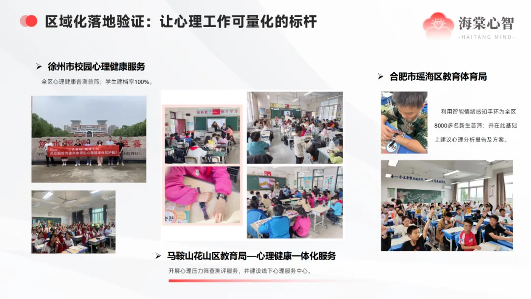 在馬鞍山花山區(qū)教育局的合作中,海棠心智就基于當(dāng)?shù)貙W(xué)生的實(shí)際需求,定制化地強(qiáng)化了心理壓力篩查與線下服務(wù)模塊,形成了符合區(qū)域特點(diǎn)的心理健康服務(wù)方案。