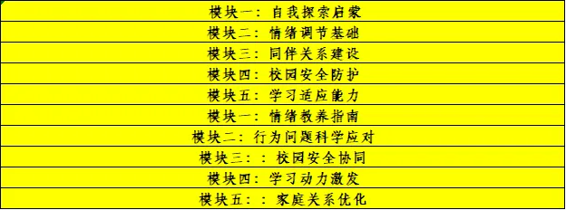 海棠心智課程圍繞五大核心模塊構(gòu)建系統(tǒng)化內(nèi)容體系,每個(gè)模塊都包含學(xué)生課與家長(zhǎng)課的對(duì)應(yīng)設(shè)計(jì)。模塊化的課程設(shè)計(jì)確保了課程的系統(tǒng)性,也允許不同學(xué)校根據(jù)自身需求靈活組合課程內(nèi)容。