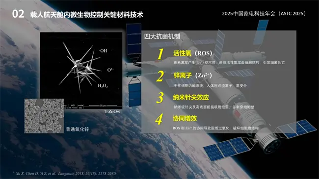 白皮書的核心技術(shù)依托天佑晶創(chuàng)獨家產(chǎn)業(yè)化應(yīng)用的航天抗菌“鋅”技術(shù)。該技術(shù)起源于載人航天工程對微生物控制的嚴苛要求,通過活性氧、鋅離子、納米針尖效應(yīng)、協(xié)同增效的四大抗菌機制,可在無需光照條件下實現(xiàn)對大腸桿菌、金黃色葡萄球菌等常見致病菌超過99.9%的抗菌率,長效抑制細菌霉菌滋生。