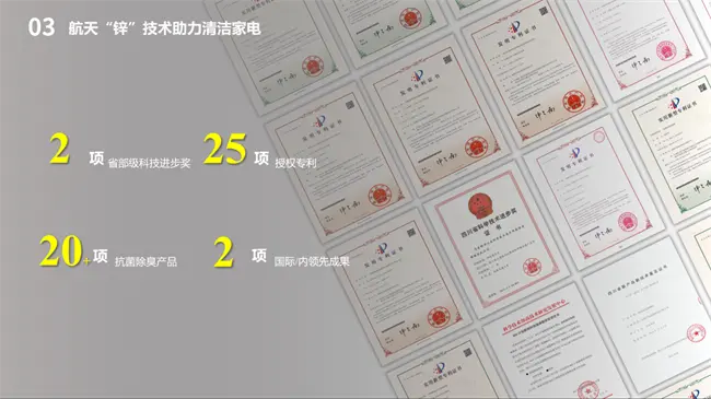 天佑晶創(chuàng)具備航天抗菌“鋅”技術(shù)完整的研發(fā)與規(guī)?;a(chǎn)能力,已建成該材料專屬生產(chǎn)線,實現(xiàn)從技術(shù)研發(fā)到產(chǎn)品落地的完全自主可控。公司擁有25年的技術(shù)積淀,依托成熟的研發(fā)體系和產(chǎn)學(xué)研合作基礎(chǔ),已獲授權(quán)專利20余項,參與30余項國家、行業(yè)及團體標準制定,并先后獲得國家高新技術(shù)企業(yè)、四川省瞪羚企業(yè)、“專精特新”中小企業(yè)等榮譽稱號。