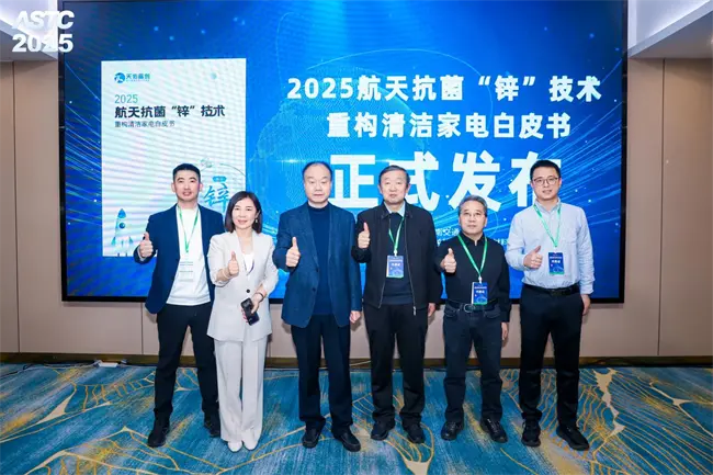 2025年12月11日,在湖北武漢召開的2025中國家電科技年會(ASTC 2025)家電環(huán)境清潔技術(shù)專題研討會上,成都天佑晶創(chuàng)科技有限公司聯(lián)合西南交通大學(xué)、中國家用電器研究院及中關(guān)村匯智抗菌新材料產(chǎn)業(yè)技術(shù)創(chuàng)新聯(lián)盟,正式發(fā)布《2025年航天抗菌“鋅”技術(shù)重構(gòu)清潔家電白皮書》。
