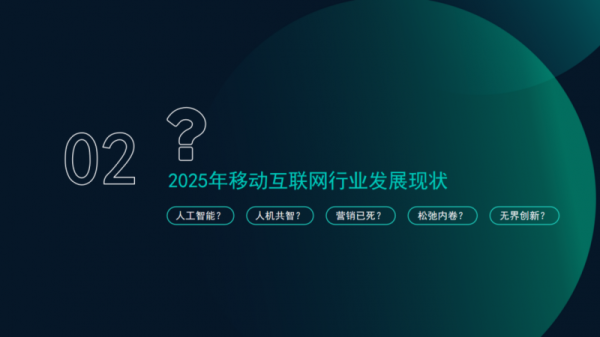 在此背景下,極光月狐持續(xù)追蹤2025年移動(dòng)互聯(lián)網(wǎng)各行業(yè)熱點(diǎn),敏銳洞察到“脫離慣性、不破難立”的發(fā)展大基調(diào)——跳出路徑依賴、打破發(fā)展慣性,于混沌中挖掘典型案例,以案例復(fù)盤探尋行業(yè)規(guī)律,正是我們洞察當(dāng)前互聯(lián)網(wǎng)發(fā)展現(xiàn)狀的核心思維。而“?”,便是極光月狐對(duì)2025年移動(dòng)互聯(lián)網(wǎng)行業(yè)現(xiàn)狀的精準(zhǔn)總結(jié)。極光月狐聚焦人工智能、人類智能協(xié)同、消費(fèi)營(yíng)銷創(chuàng)新、新興內(nèi)容生態(tài)等核心領(lǐng)域,拆解其在2025年的發(fā)展邏輯。