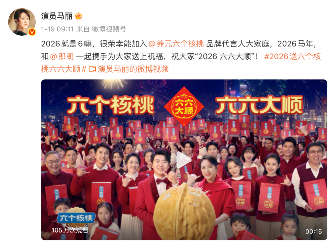 - 這波操作“六”!六個(gè)核桃官宣馬麗代言,新年彩頭已就位
