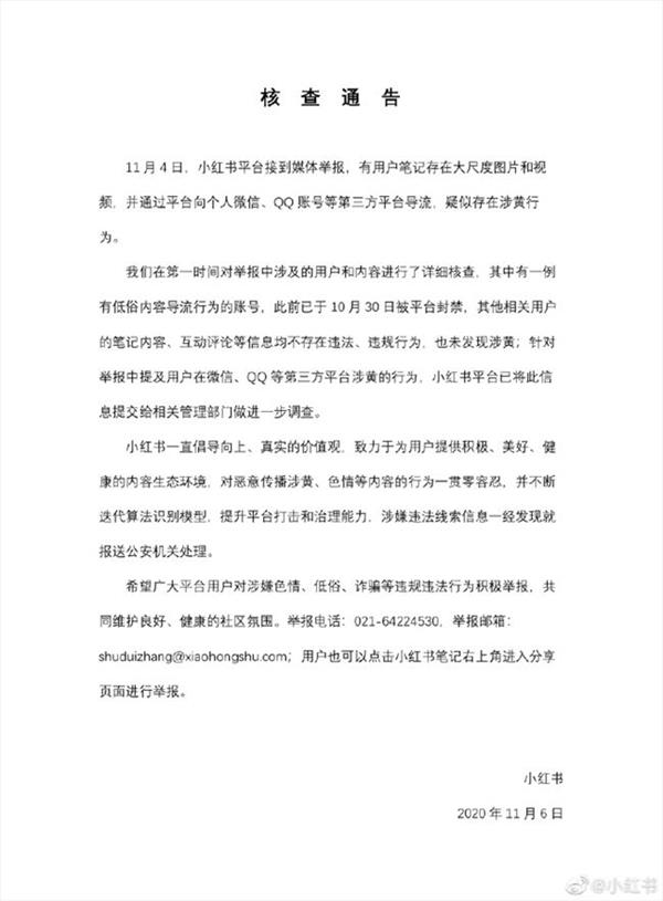 近日,有媒體報道小紅書平臺存在大尺度圖片和視頻,意思存在涉黃行為。對此,小紅書回應稱,核查出其中有一例有低俗內容導流行為的賬號,已于10月30日封禁。對惡意傳播涉黃、色情等內容的行為一貫“零容忍”。