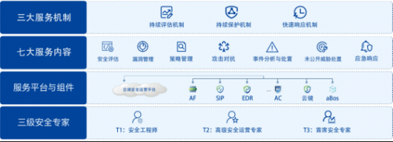 現(xiàn)階段傳統(tǒng)人工安全服務面臨以下挑戰(zhàn) :傳統(tǒng)安全服務最核心的要素是人,其最大的挑戰(zhàn)也來自人員本身。一方面,一線人員流動頻繁,導致服務人員能力參差不齊,服務效果難以保障;另一方面,人的精力有限,不可能不吃不喝時時盯著網(wǎng)絡,這就導致服務不持續(xù),無法應對隨時發(fā)生的安全威脅,例如新漏洞不斷曝光、黑客持續(xù)性攻擊等。