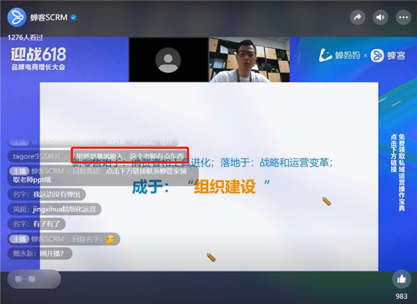 5月26日,蟬媽媽X蟬客舉辦了「品牌電商增長大會」,在私域?qū)鲋?邀請青蛙王子、暴肌獨角獸等7個私域操盤手,以“流量變留量,‘公域+私域’引爆增長”為主題,內(nèi)容包含聚流-留存-轉(zhuǎn)化等全流程,實戰(zhàn)案例拆解,分享618大促,私域怎么玩才能抓住流量,促進(jìn)公私域雙增長。
