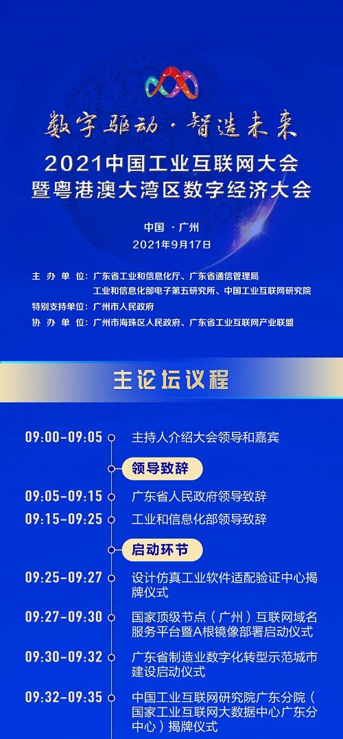 2021中國工業(yè)互聯(lián)網(wǎng)大會暨粵港澳大灣區(qū)數(shù)字經(jīng)濟大會主論壇議程最新發(fā)布!